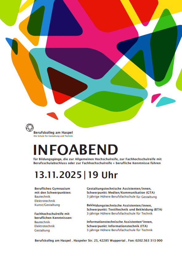 Berufskolleg am Haspel, Haspeler Str. 25, 42285 Wuppertal, Tel: 0202 563 - 313-000 >> Flyer
