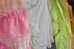 Ein Kittel blüht auf! Die Schülerinnen und Schüler der Oberstufe der Berufsfachschule Textil kreierten gemeinsam unter dem Arbeitstitel „Flower Power“